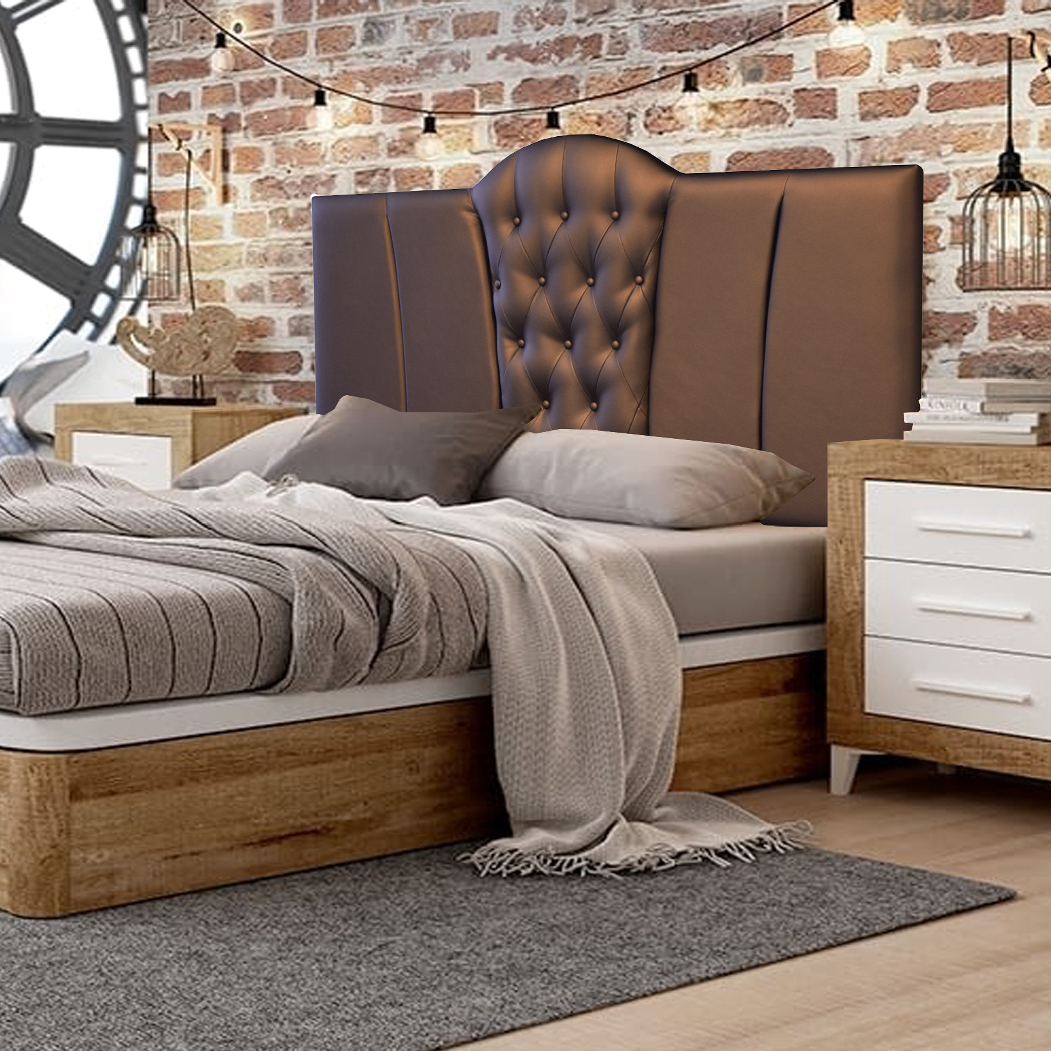 Cabecero tapizado en polipiel con diseño único, exclusivo, moderno y sumamente versátil. Diseñado con un excelente acolchado que brinda máximo confort e inmejorable terminación, se adapta a gran cantidad de ambientes y decoraciones diferentes. Pensado y ejecutado para clientes exigentes. Gran durabilidad.